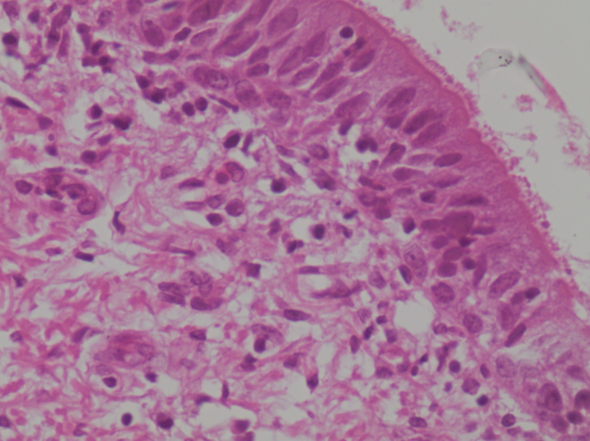 - Colunar, cilíndrico ou prismático: células altas, com núcleo alongado e perpendicular ao sentido do epitélio